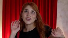 A ruiva Marina Gold tira o vestido e abre as pernas para tocar os lábios de sua buceta rosa depilada!