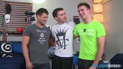 Três pênis são melhores do que um! Machos bonitos e com pênis grandes, Troy, Asher e Bobby se juntam para se masturbar.