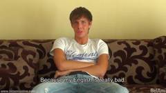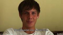 Sean Davis é um belo homem gay. Nessa cena, ele fala sobre si mesmo e fica nu, para poder se masturbar sozinho e gozar em cima de si mesmo.