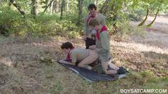 Greg McKeon, Jack Bailey e Grey Gold estão em um acampamento no meio da floresta. À margem, eles podem foder as bundas uns dos outros.