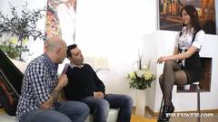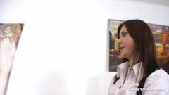 Esta gostosa morena fica muito sexy em suas meias e o que ela prefere no sexo é quando é generoso e hardcore!