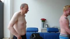 Alguns velhos amadores finalmente se atrevem a convidar uma jovem puta para um gangbang! Veja como a festa fica legal depois da felação.