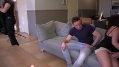 Uma jovem morena conhece dois caras. Ela chupa suas picas, se masturba com um vibrador e depois aceita a penetração profunda em ambos os buracos.