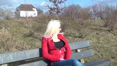 A loira Tina primeiro se masturba nesse vídeo amador, mas logo decide chupar e foder um pau até gozar!