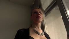 Essa mulher trans de meia-idade é fodida na bunda com um plug anal e o pau de um homem. Ela acaba engolindo sua carga quente.