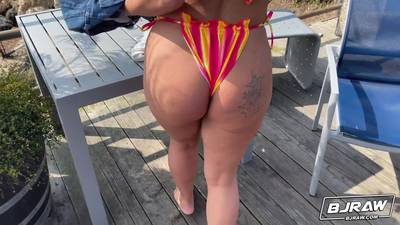 Rachael pôs fim à sua dose de bronzeamento em um instante quando foi convidada por um cara que mal podia esperar para enfiar o pênis na boca e entre os seios dela.