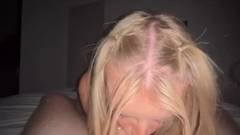 Nesse vídeo amador de POV, uma loira gostosa e nua tem sua buceta penetrada por trás e chupa um pau com prazer.