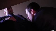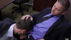 Com fome de pênis, Spencer Fox rasteja para debaixo da mesa e chupa o de Colby Jansen. A reunião termina, então Colby perfura o buraco de Spencer!