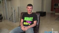 James Lee deita-se no chão, nu, para brincar com o seu grande pau. Ele gosta de se dar o seu tempo para se masturbar e gozar sobre si mesmo.