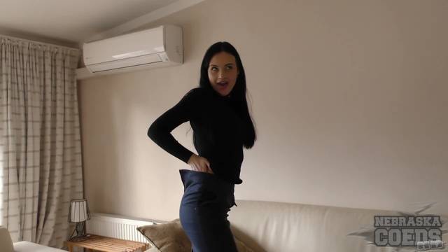 Gabby Bella tem 20 anos e é uma morena muito bonita que vem para se exibir e se tocar para o deleite de todos os voyeurs desse pornô.