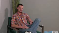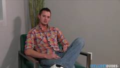 Kyle Hurson se despe e se excita com sua própria mão. Ele acaricia e masturba seu grande pau agora que está em seu cantinho preferido da casa.