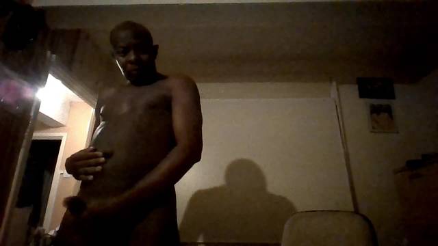 Um velho negro em frente à câmera do seu celular começa a brincar com sua grande pica preta e se masturba até gozar. Ele faz isso o tempo todo.