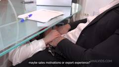 Esta tia com o plug no cu vai vir por debaixo da mesa, ela quer chupar pica e que a fodam bem no cu em profundidade!