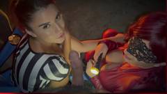Roxie e Sarah comemoram o Halloween com sexo a três