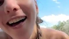 Uma garota magra está com um homem em um barco à beira de um lago. Ela chupa o pau grande dele, deitada de costas para que ele a penetre profundamente.