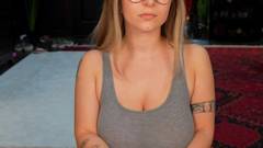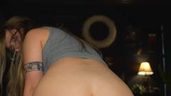 Uma loira de peitos grandes e bunda grande nos mostra como se masturba com um vibrador grande. De costas para a câmera, ela se alimenta com o vibrador.