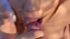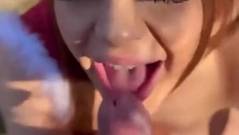 O rosto de uma bela garota inundado de sêmen após o sexo oral