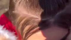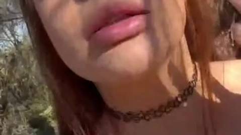 Uma jovem sexy chupa o pau de um homem ao ar livre em POV. Ela se ajoelha na frente dele e chupa até que jorros de esperma na cara!