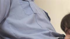 Esse policial maduro e pervertido recebe um boquete de um jovem excitado e fode seu cuzinho peludo!