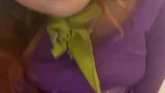 Uma linda ruiva de meia-calça roxa masturba sua buceta com seu brinquedo sexual nesse vídeo amador de masturbação solo.