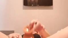 Quero ser penetrada, então enfio o vibrador de 25 cm. Ele entra até o fim, mas o esperma quente que entra na minha buceta está faltando.