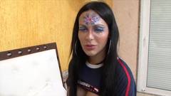 Usando uma camiseta da Inglaterra, essa beldade deslumbrante transará com seu rival, um cara com uma camiseta da Alemanha, trocando prazeres sexuais.