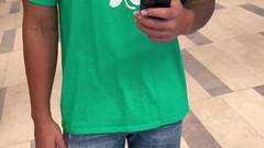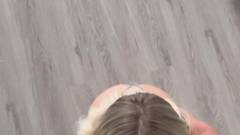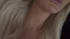 Loira com peitos grandes e lingerie verde sexy se diverte com um pau grande e gordo dentro da boca e da buceta. Ótimo vídeo amador!
