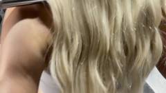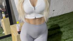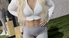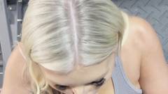 Uma loira que está malhando na academia, fica excitada e decide chupar um pau e ser fodida por trás nesse vídeo amador.