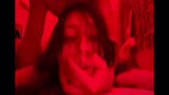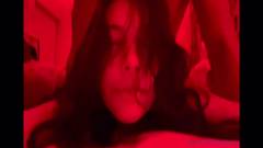 Vídeo amador filmado em vermelho, com um casal safado transando no estilo cachorrinho. A garota recebe uma mão dura em seu rosto.