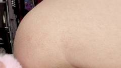 Essa loira amadora com orelhas de coelho sente falta de uma grande cenoura em sua buceta, então ela se masturba sozinha com seu sexo.