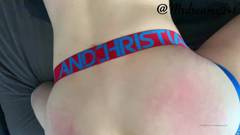 As nádegas do meu garotinho estão vermelhas e prontas para receber meu pau grande. Eu estico seu cuzinho suculento com meu pau e gozo muito!