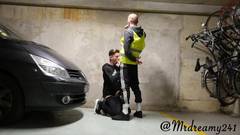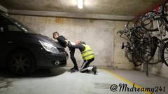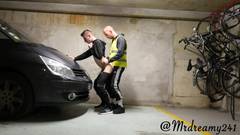 Um maricas excitado me chupa no estacionamento e se inclina para ter sua bunda de maricas amador fodida pelo meu pau grande.