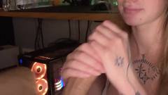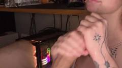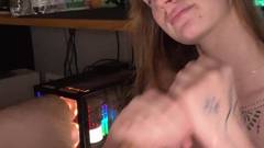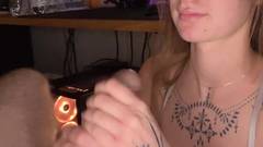 Essa linda amadora com tatuagens vai bater uma punheta no pau grande de seu amante e chupá-lo, cada centímetro dele, com prazer!