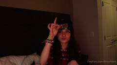 Uma garota com um piercing no nariz senta-se em cima do pau