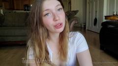 A linda amadora Tessa Winters masturba sua buceta rosa na solitária, enquanto está sentada no chão.