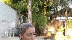 Essa garota gosta de filmar seu orgasmo, dentro da piscina, ao ar livre. Que puta safada ela é!