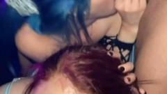 Uma ruiva e uma garota de cabelos azuis se juntam para beliscar bundas, lamber tetas, chupar paus e serem fodidas. Vai ser um momento delicioso.