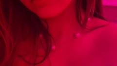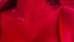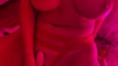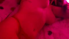 Esta linda garota brincando com peitos e um brinquedo sexual
