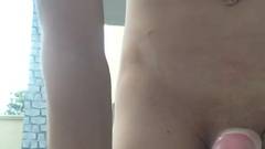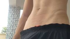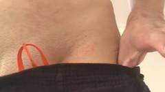 Magrinho dotado balançando no short de futebol