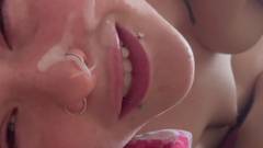 Com a bunda para cima, essa amadora grava a si mesma fazendo sexo oral em seu homem e ficando com a cara cheia de porra.
