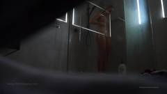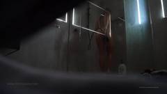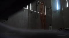 Uma linda garota, toma banho em um banheiro público e não faz ideia de que está sendo filmada por uma câmera oculta.