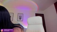 Uma jovem vadia coloca meias brancas e, sentada em uma cadeira, transa profundamente com um grande vibrador e, além disso, se deixa tentar pelos pés!