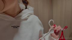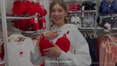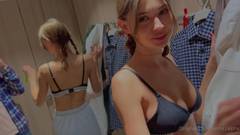 Anna Ralphs experimenta uma lingerie no cubículo e isso excita o cara. A linda garota aproveita a oportunidade para se ajoelhar e chupar o pau dele.