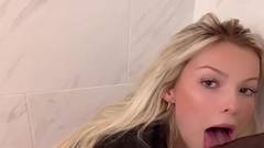 Loira amadora treina suas habilidades de chupar pênis com um grande vibrador preto nesse vídeo caseiro.