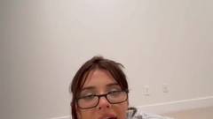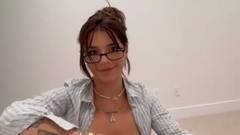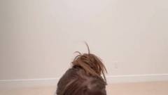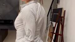 Uma garota excitada com peitos e bunda grandes me pede para segui-la até o quarto para que eu chupe meu pau e depois desfrute de uma foda nos peitos