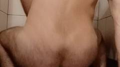 Eu bato minha bunda em um vibrador grande e duro, adoro dilatar meu ânus e acabo engolindo várias doses de esperma cremoso.