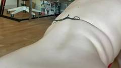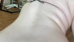 Isabelleryan, sua modelo grossa on-line, veste um minúsculo biquíni vermelho e se masturba no chão com dois brinquedos sexuais.