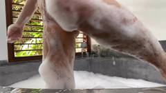 Ruiva excitada acaricia sua buceta em um banho de espuma