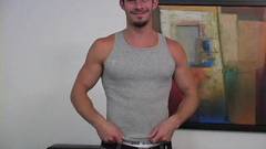 Mike Roberts, tira sua cueca branca e soca seu pau duro, sozinho, até explodir. Que gostoso!