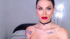 A linda Emmily Santibanez, tatuada e trans, se masturba com seu pau grande na frente da câmera.